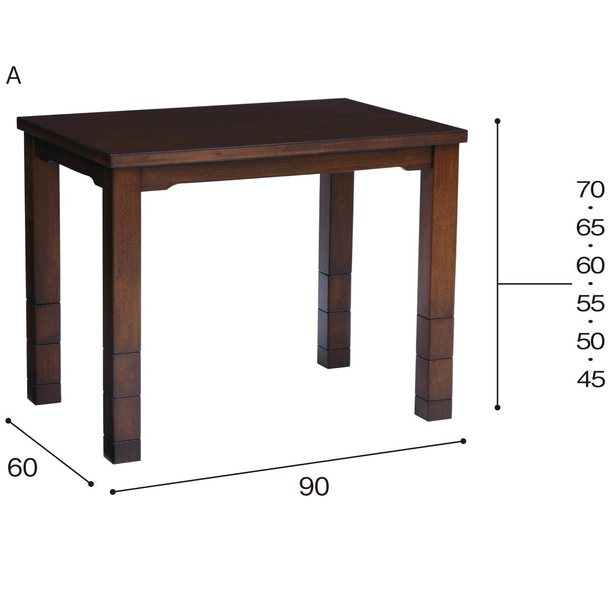 こたつ本体のサイズ(ダークブラウン)A(横90×縦60cm) ※()内は内寸です。