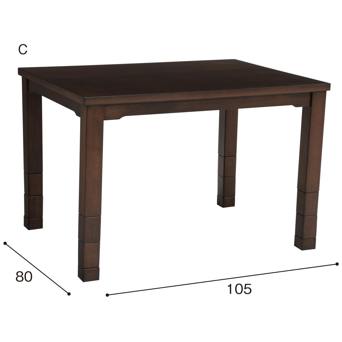 こたつ本体のサイズ(ダークブラウン)C(横105×縦80cm)