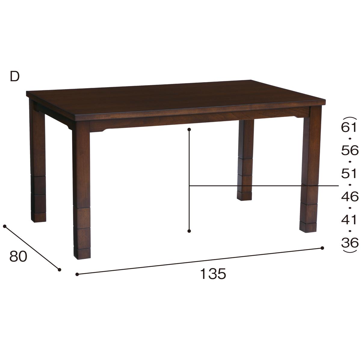 こたつ本体のサイズ(ダークブラウン)D(横135×縦80cm) ※()内は内寸です。