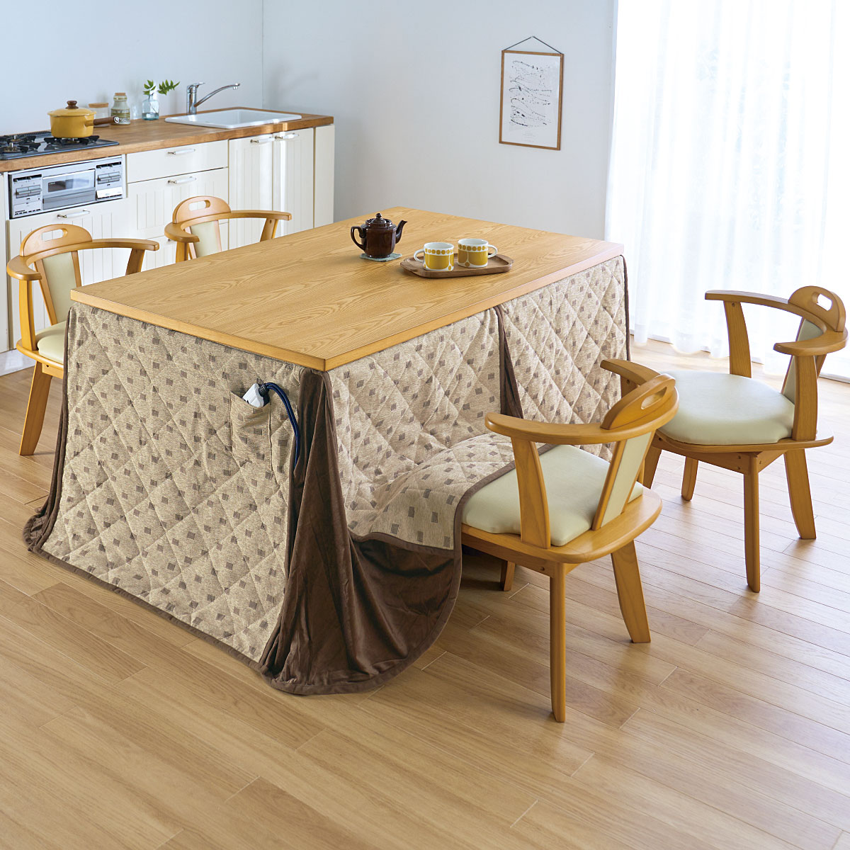ナチュラルダイニングこたつテーブルとこたつ掛け布団がセットになって登場!