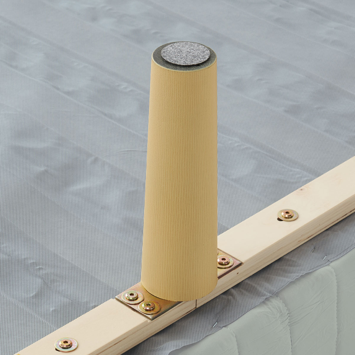 広げたマットレスに木桟・連結用金具を固定し脚を取りつけるだけ。女性1人でも組み立て簡単!