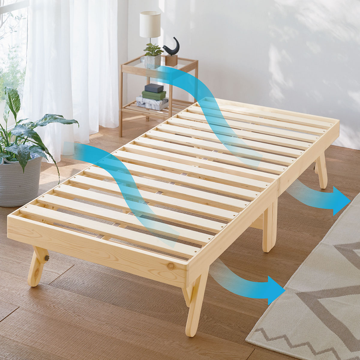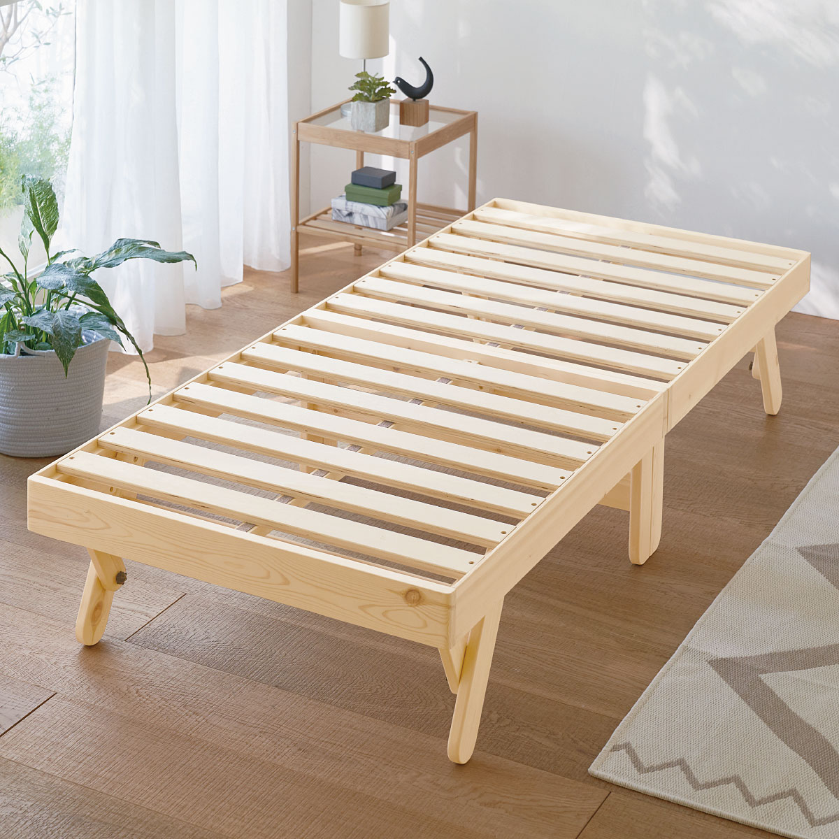 コンパクトな木製「折りたたみ」すのこベッドです。使用しないときは折りたたんで省スペースに!