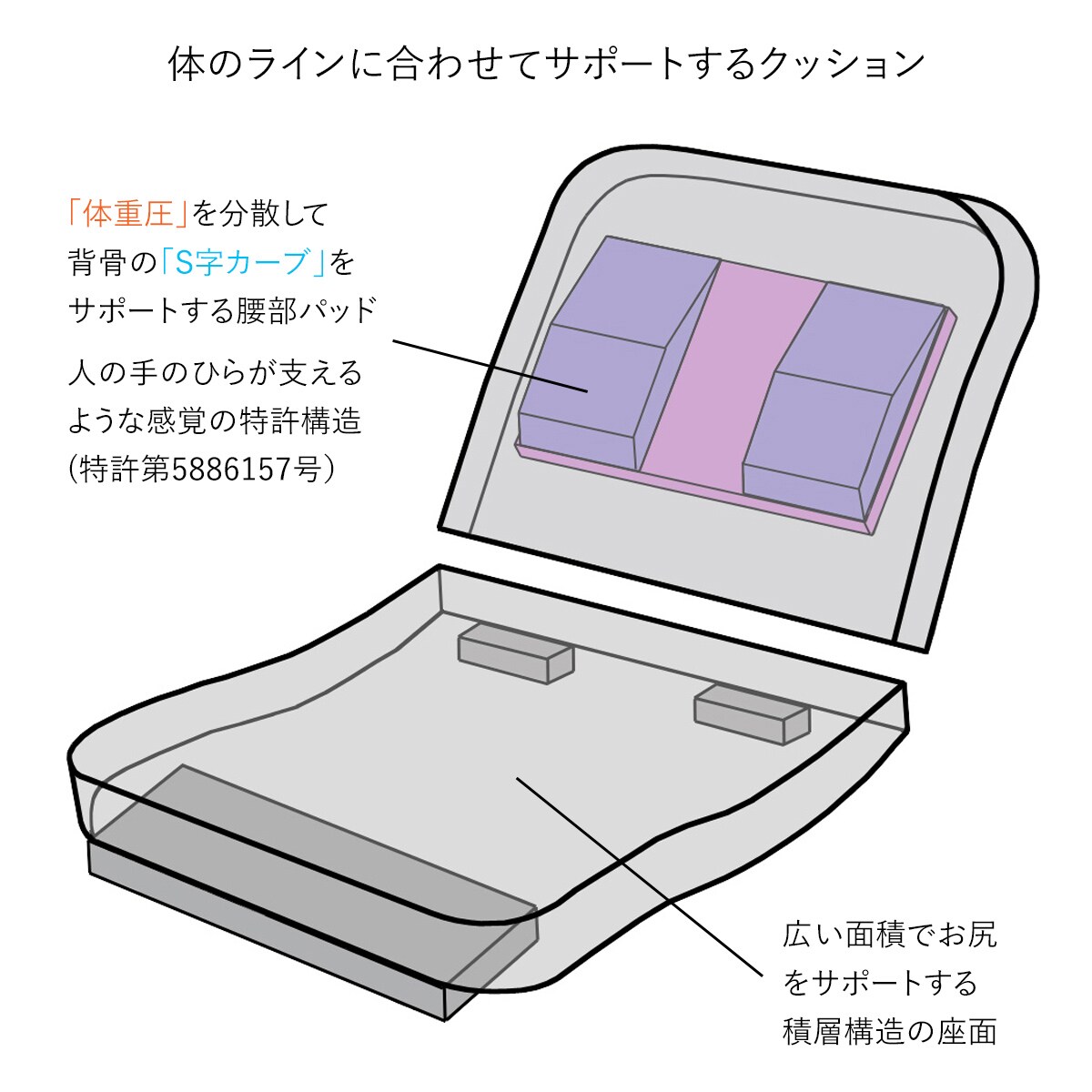 体重圧を分散し、負担が少ない姿勢をサポートします。