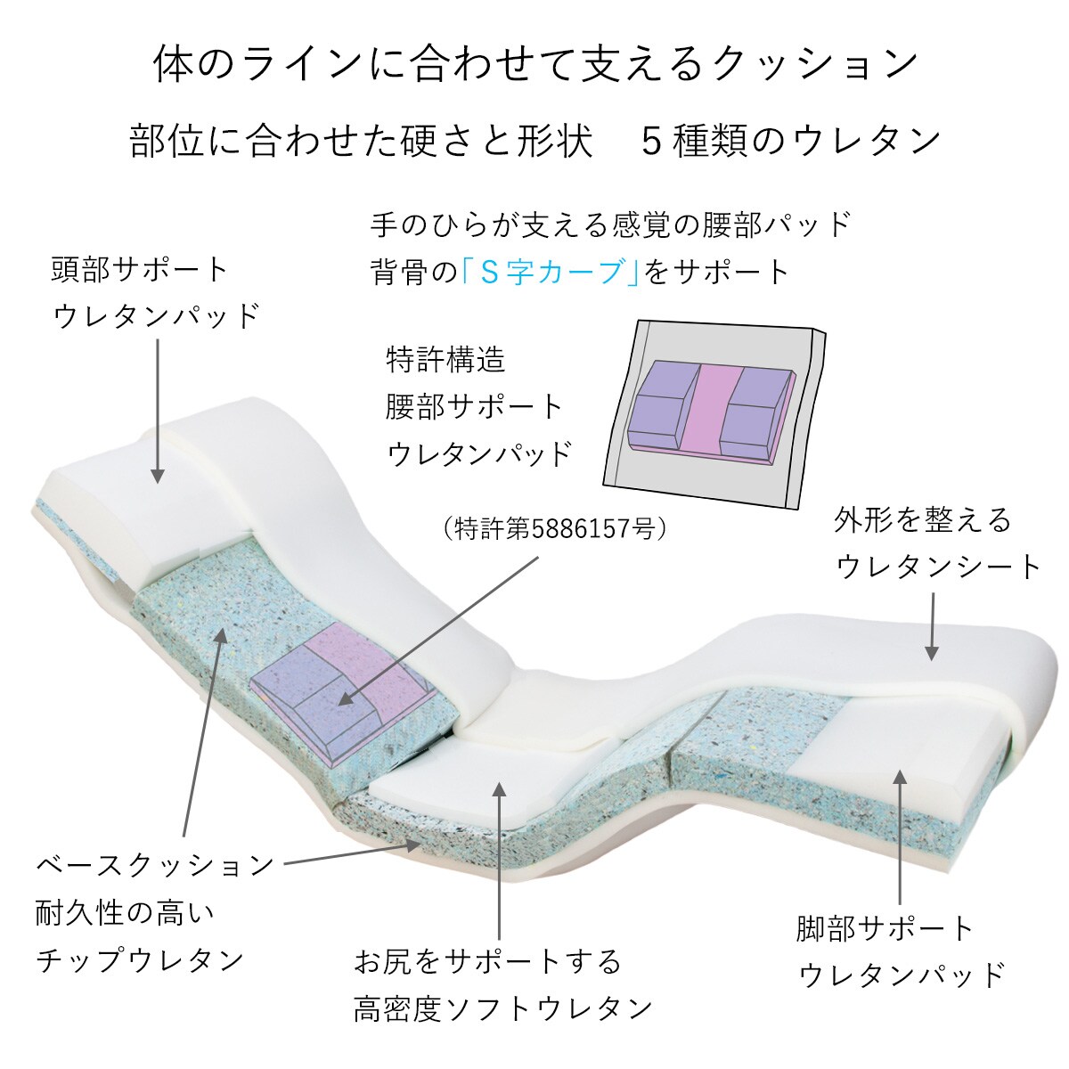 産学共同研究から開発したウレタン積層構造クッションを使用。