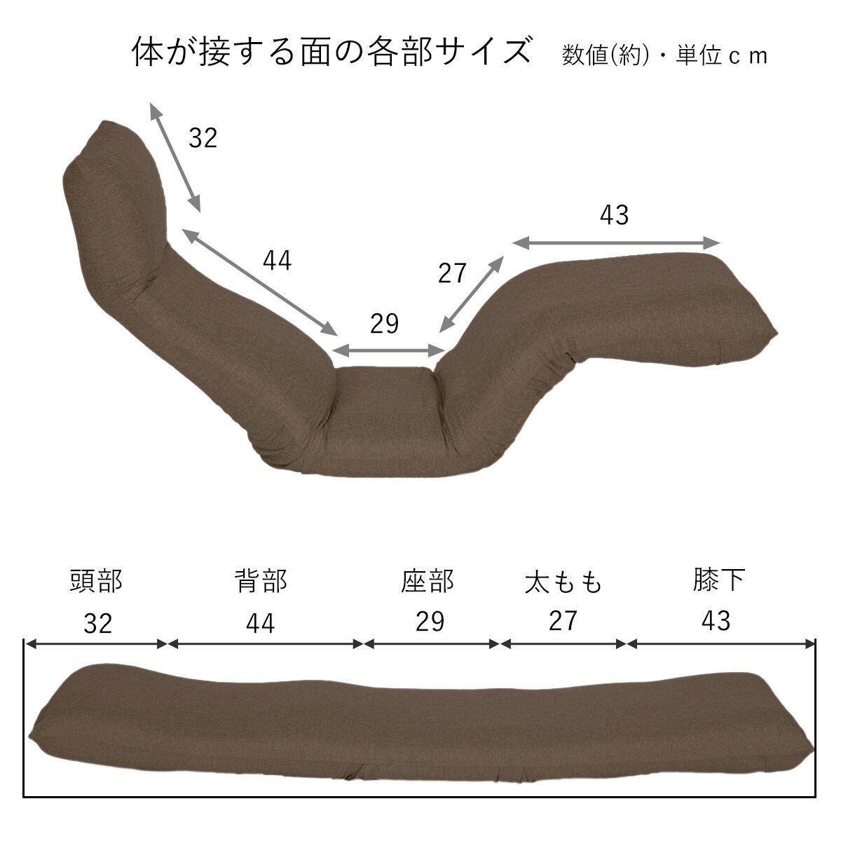 身体が接する面のサイズ寸法※寸法の単位はcmです。