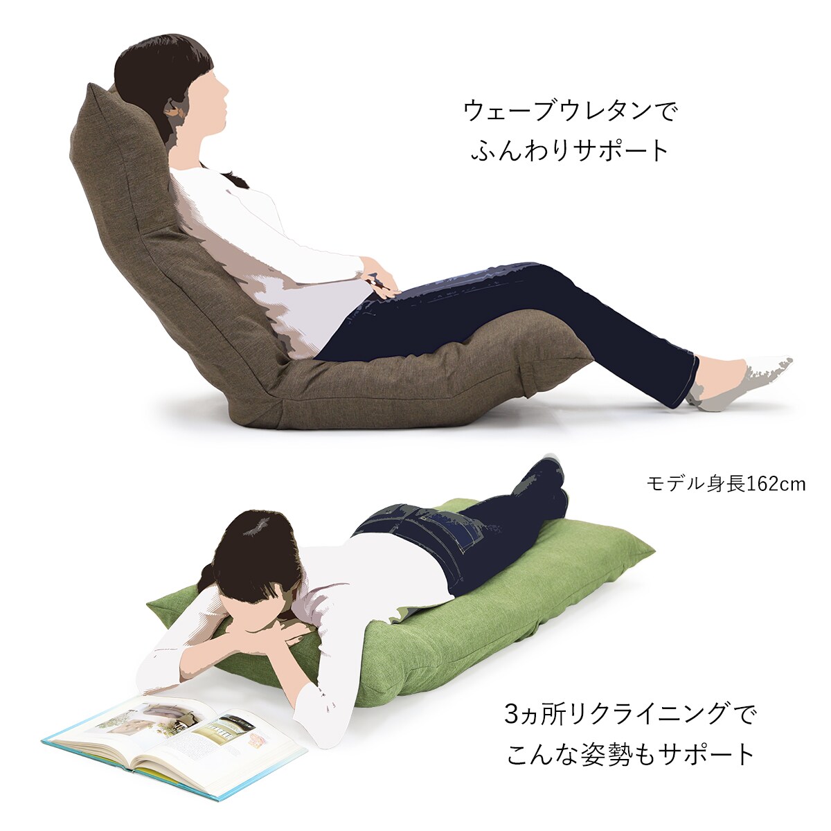 いつもの昼下がりに、一日の終わりのゆったりした時間に。ふんわりと包み込まれるようなウェーブチェアです。充実したプライべート時間を過ごすのに最適な、座り心地にこだわったプレミアムな座椅子はいかがでしょうか。