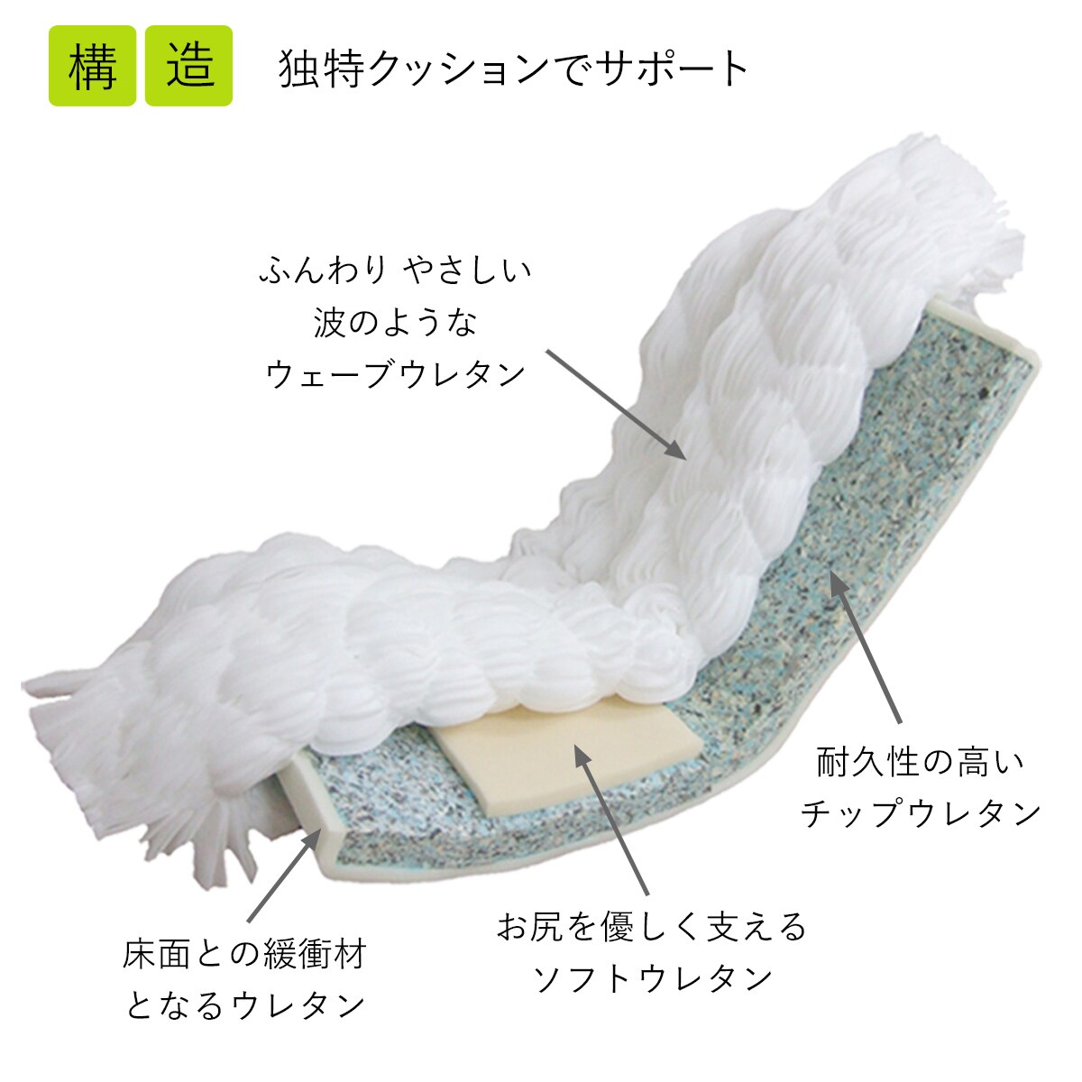 ウェーブウレタンの特徴と耐久性を考えた構造。