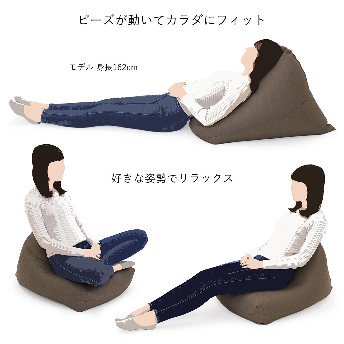 ビーズが動いて心地よく身体にフィット! お好みの姿勢でリラックス。
