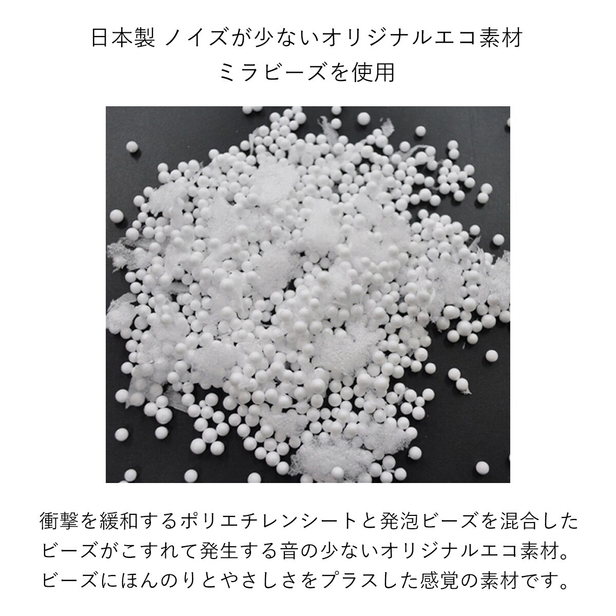 ノイズの少ないオリジナルのエコ素材「ミラビーズ」を使用しています。