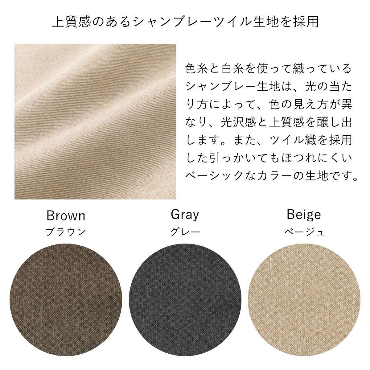 上質感のある織生地とシンプルなカラーで、インテリアにもなじみます。