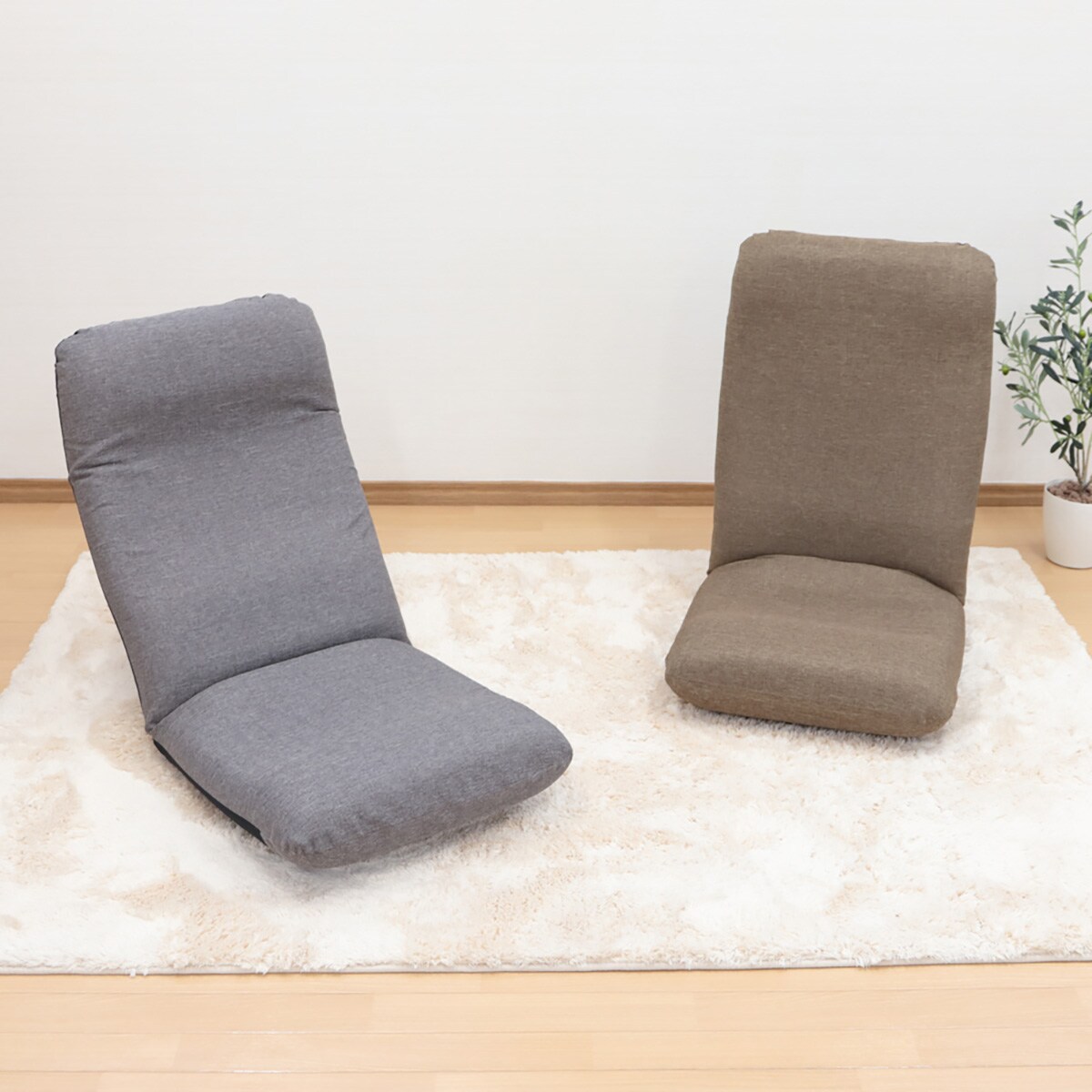 (左から) グレー・ブラウン場所をとらない扱いやすいサイズのヘッドリクライニング座椅子です。