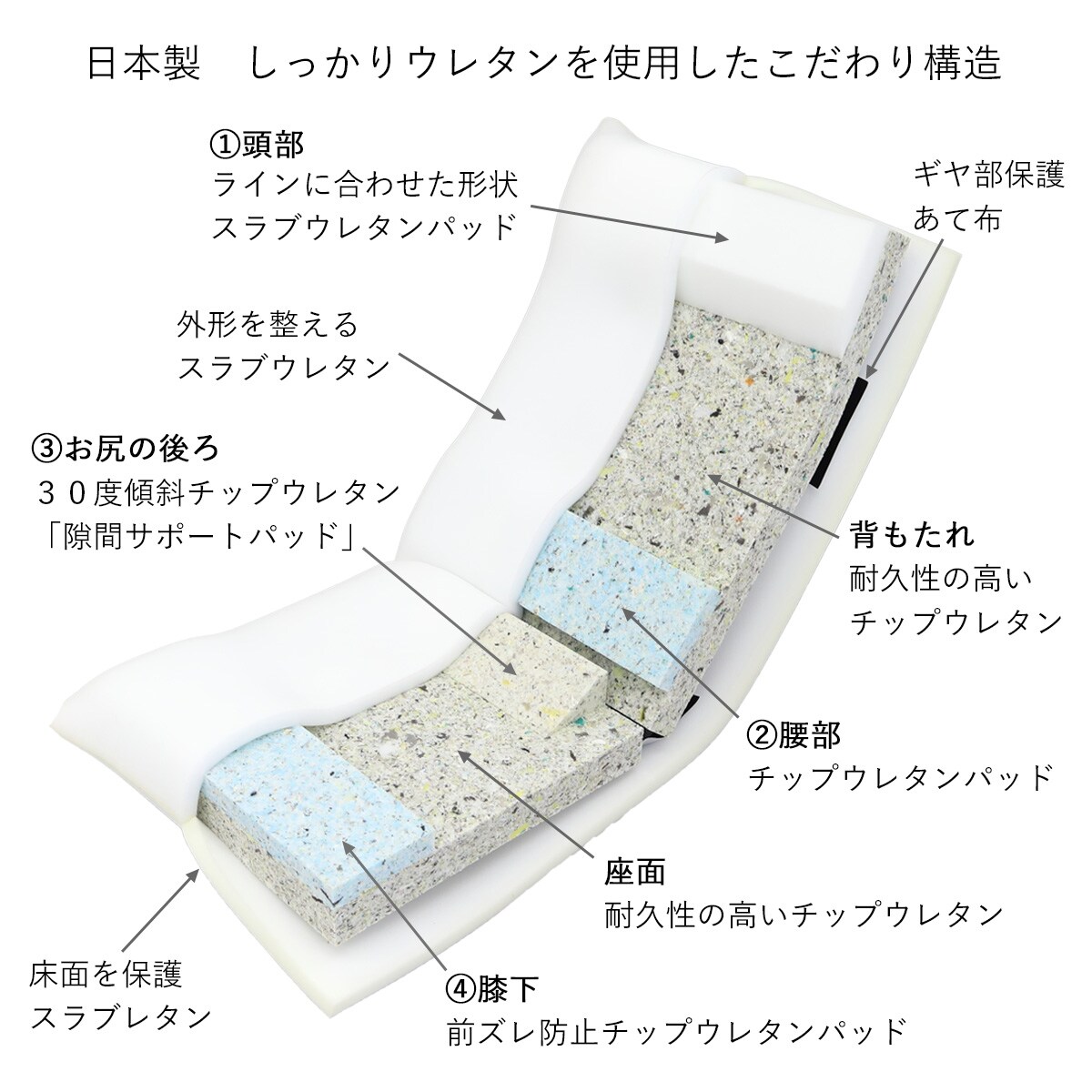 しっかりウレタンを使用したこだわりの構造。