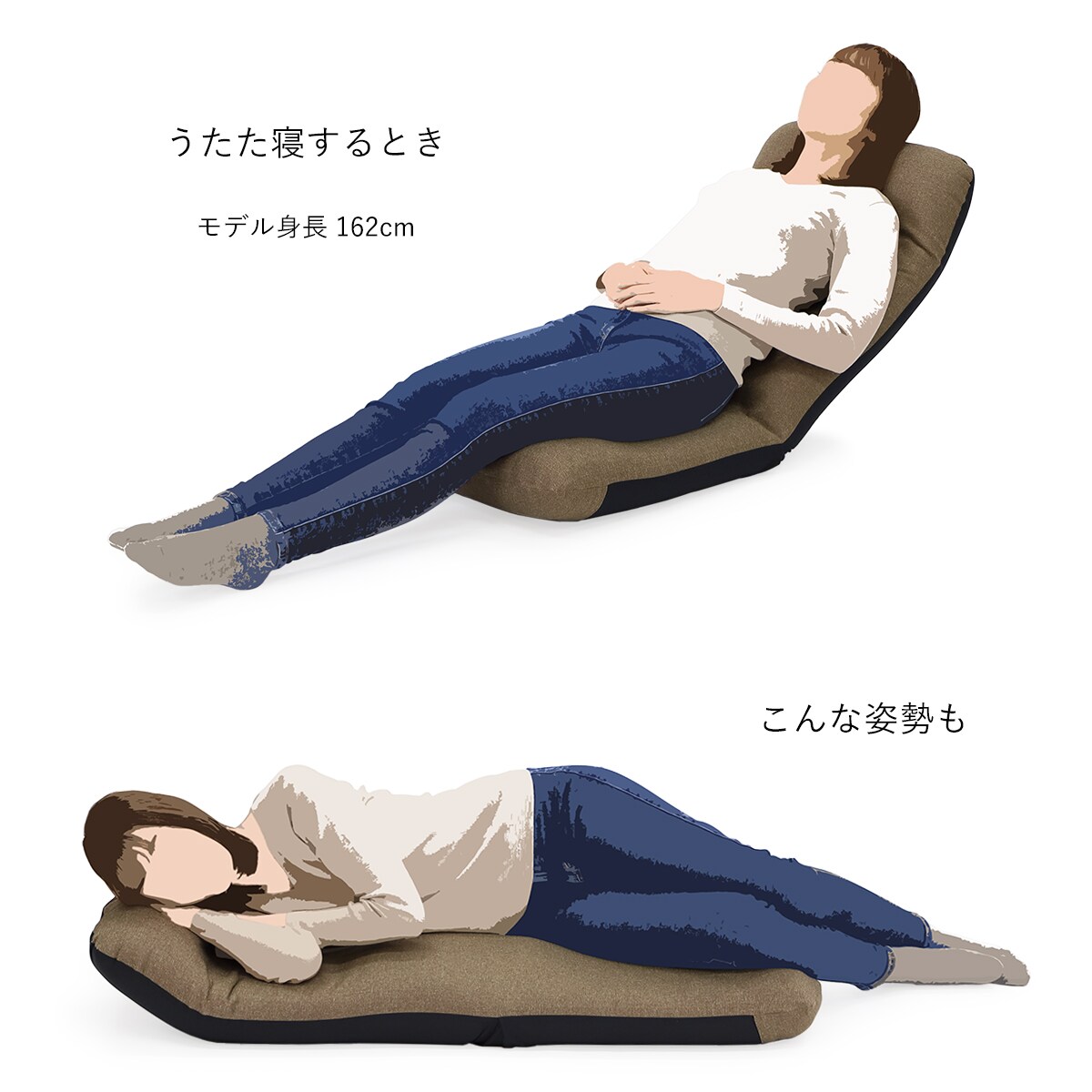 お好みの角度に調節して、ゆったりくつろげます。