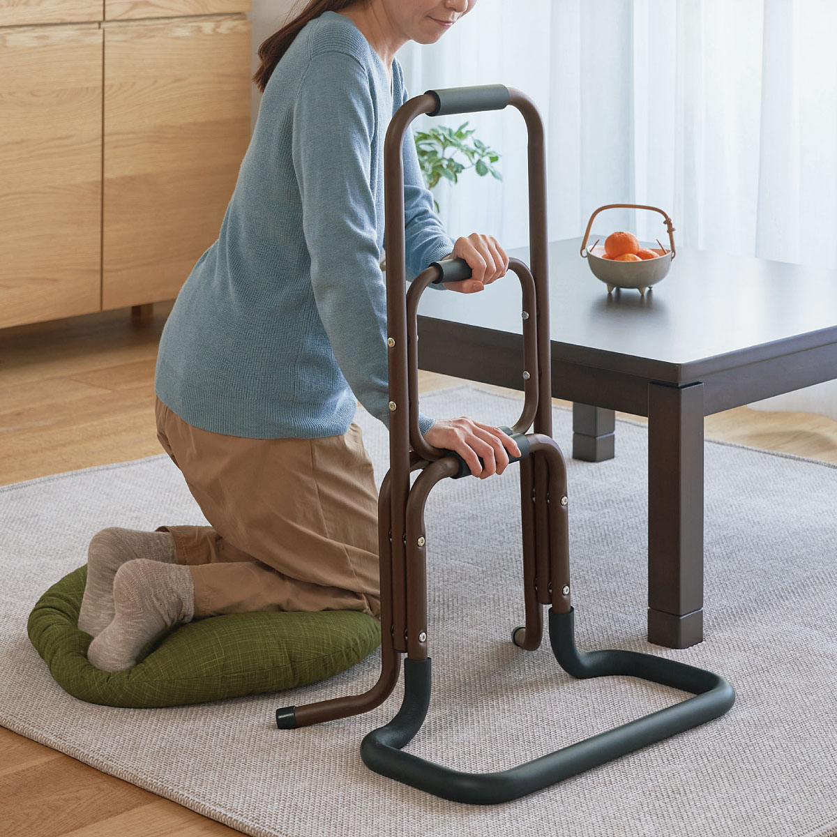 ダークブラウン様々な場面での立ち上がりをサポートする補助手すりです。