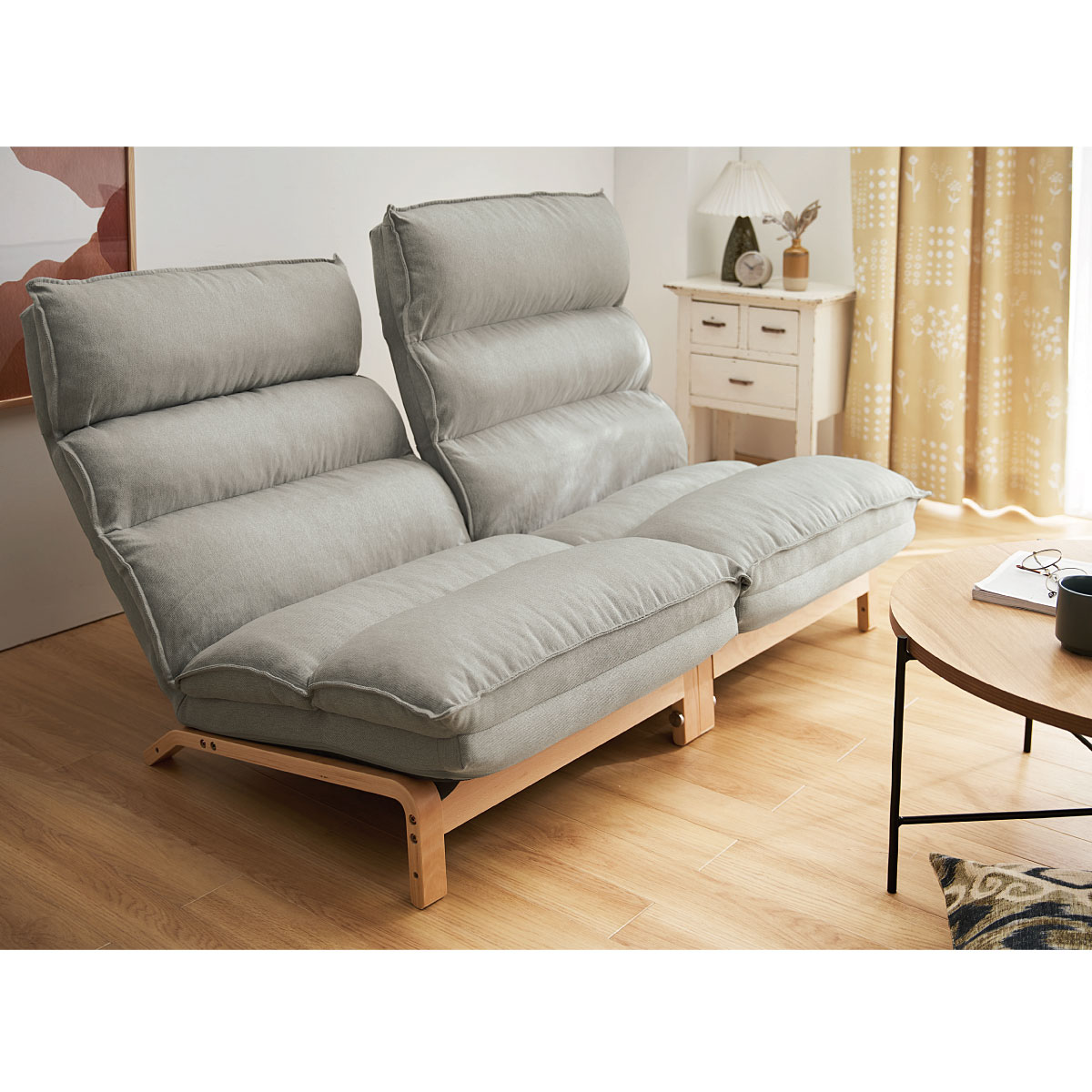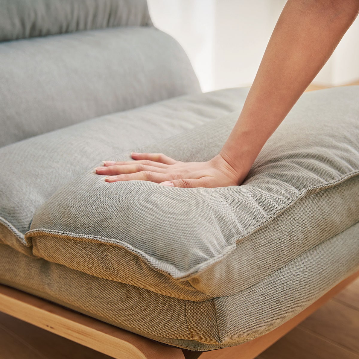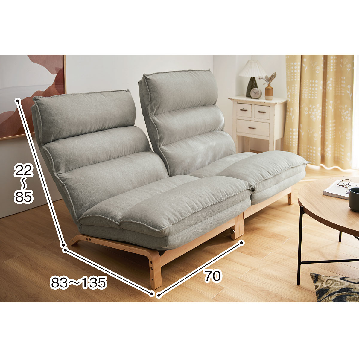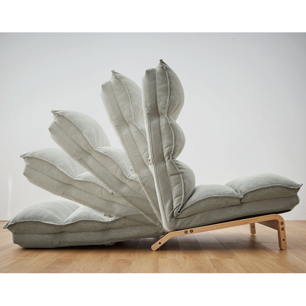 ボリュームたっぷりな極厚クッションが快適。贅沢サイズのひとり掛けソファです。背部と頭部はリクライニング仕様なので、お好みの角度に調整していただけます。木脚付でインテリアに馴染むナチュラルなデザインも魅力的。程よい高さで立ち上がりやすいのも嬉しいポイント!ネジで連結すると二人掛けのソファになります。