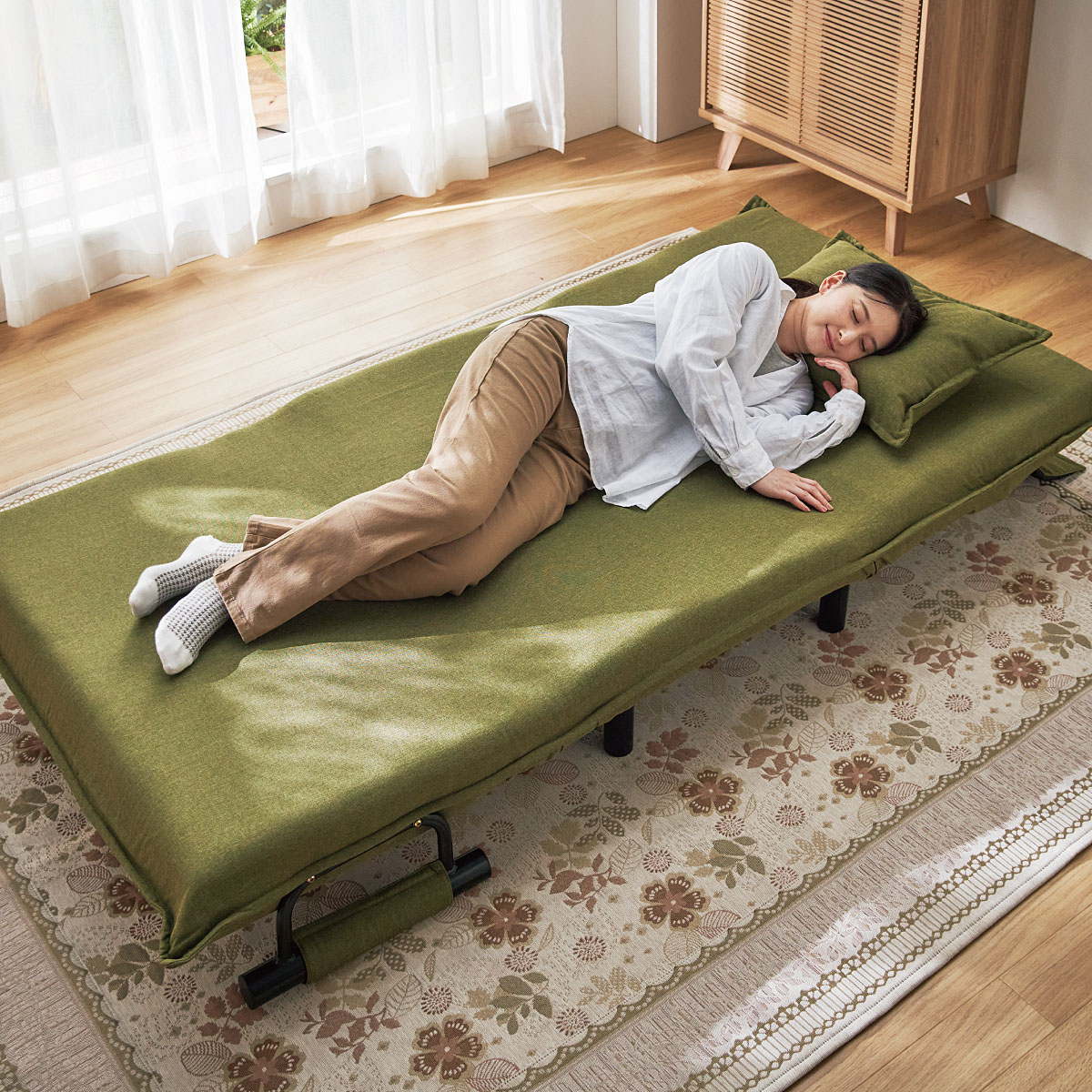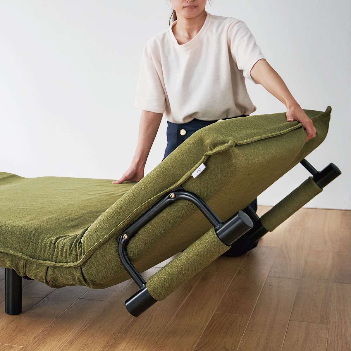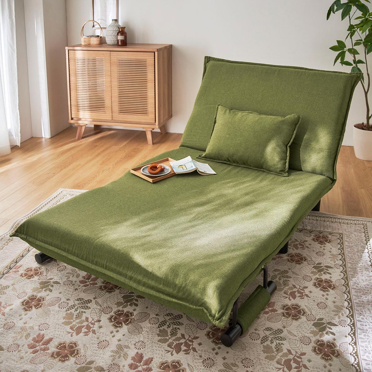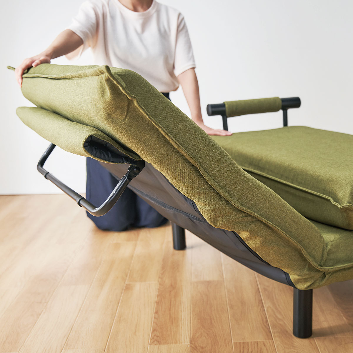 グリーン B (幅103cm)背もたれを倒してフラットなベッドスタイル。