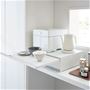 オーブンレンジや炊飯器の下に置いて使える引き出し&スライドテーブルです。必要なときにだけサッと引き出すだけ!引き出しにラップやカトラリーなどを収納でき、引き出しは料理の一時置きや調理スペースとして活躍します。用途に合わせてテーブルの上下を入れ替えることも出来るのでお好みの高さに変えることもできます。引き出しやすい取っ手付きなのも嬉しいポイントです♪