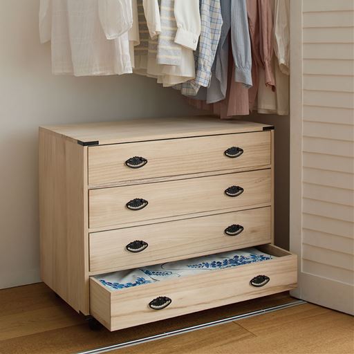 ■[本体・引き出し]天然木(桐材) [本体背板・引き出し底板]天然木化粧合板(桐材) ●キャスター4個(内2個ストッパー付き)●中国製※沖縄県や一部島しょ部など配送上の都合によりお届けできない地域がございます。【完成品】(キャスターのみ取り付け)【大型別配送】 【天然木】