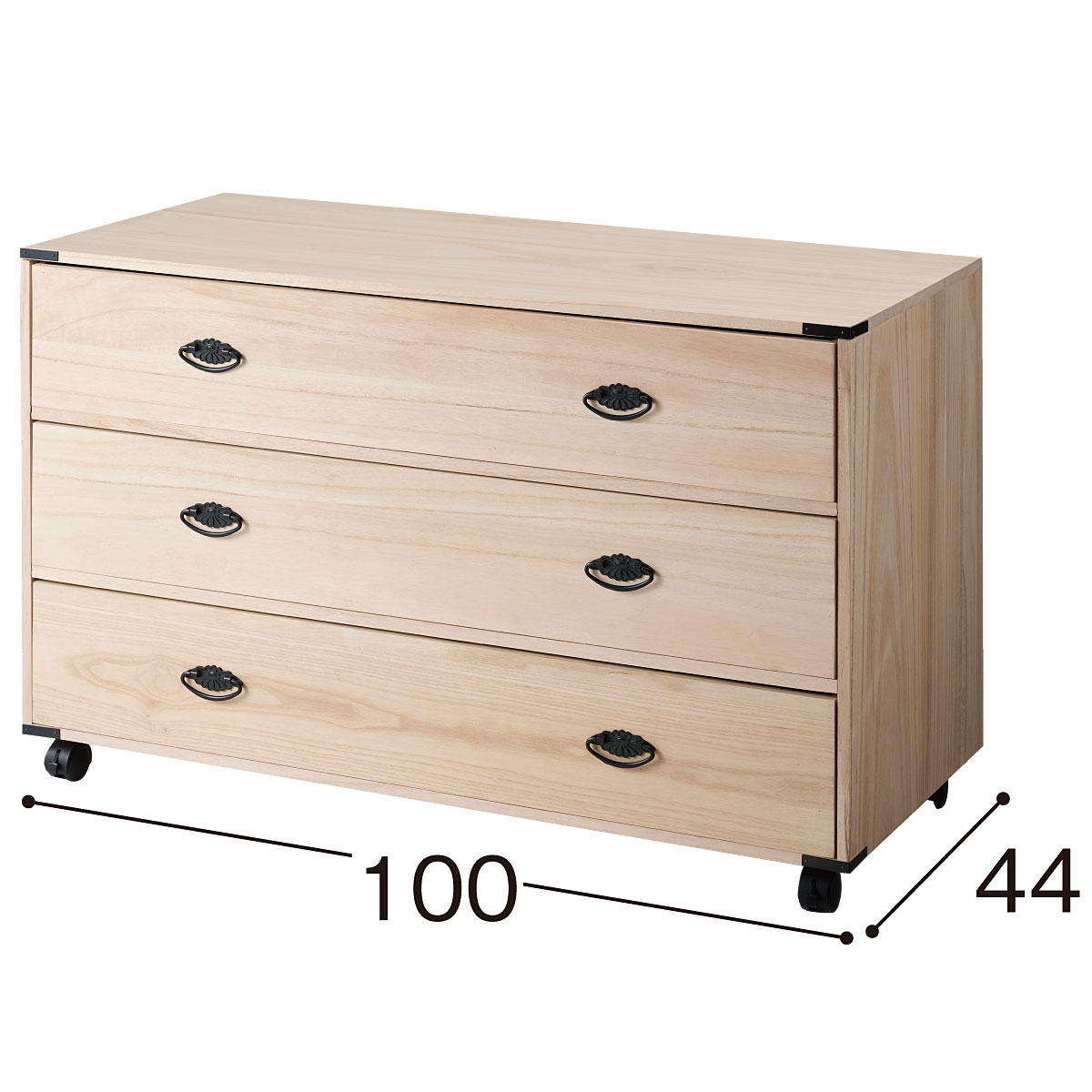 ナチュラル C (幅100cm/3段)着物はもちろん、普段の衣類の保管にも重宝する桐製のたんすです。