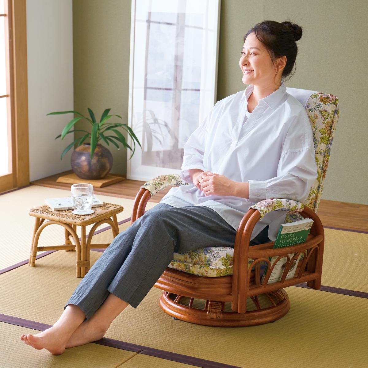私だけのくつろぎ空間を心地よく。軽くてしなやかな天然籐を使用したリクライニング回転座椅子です。