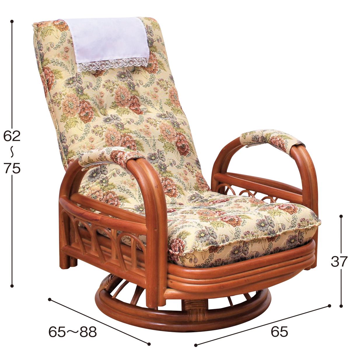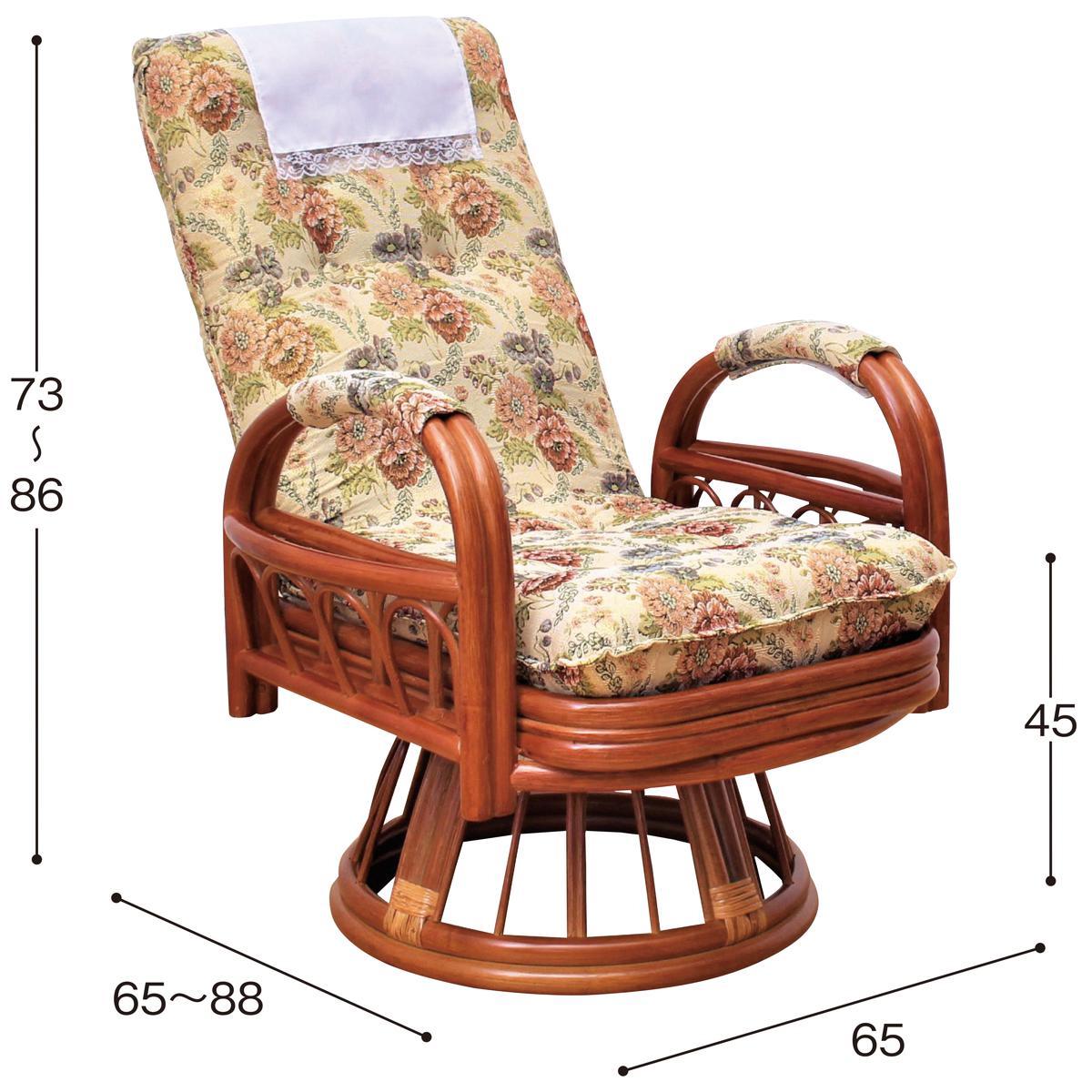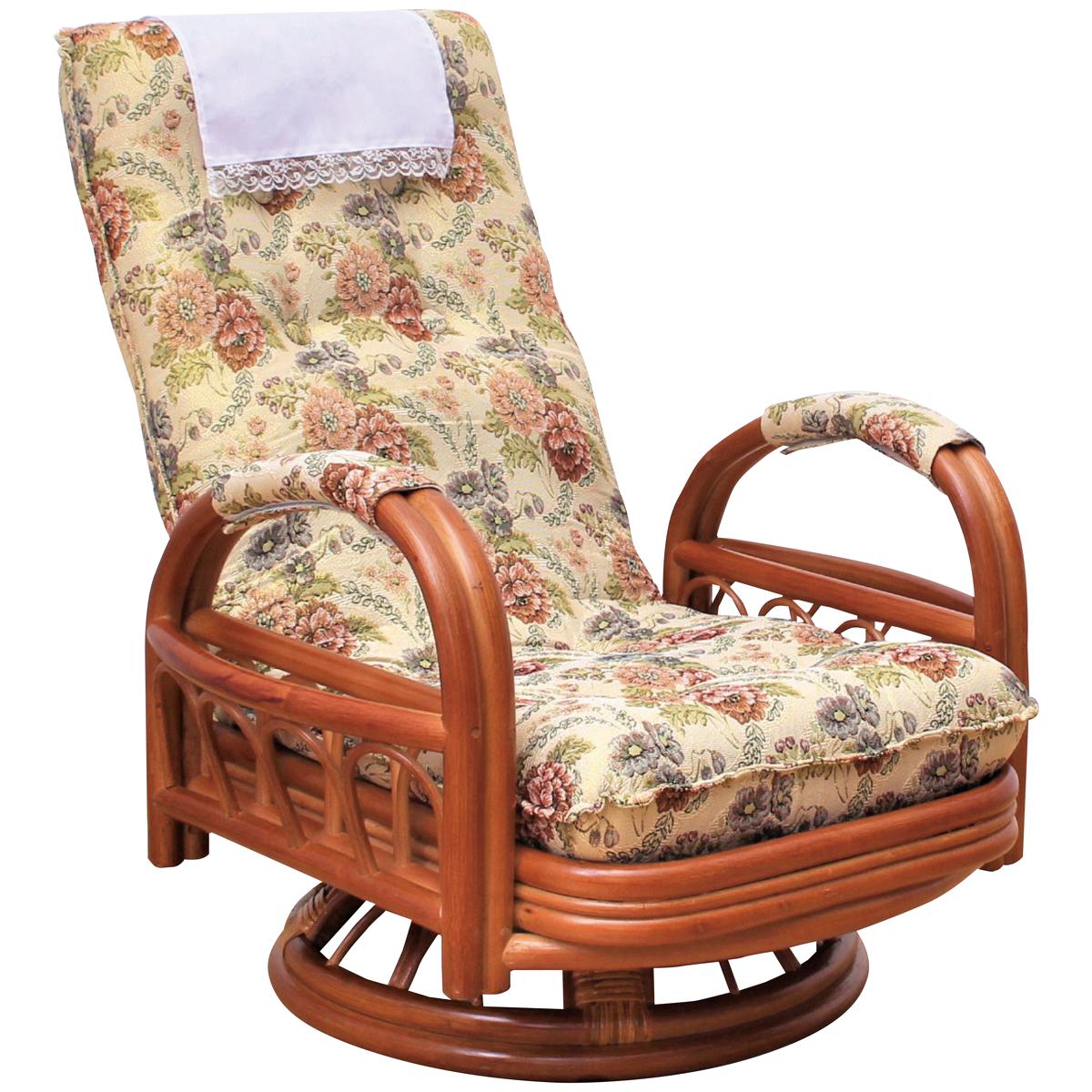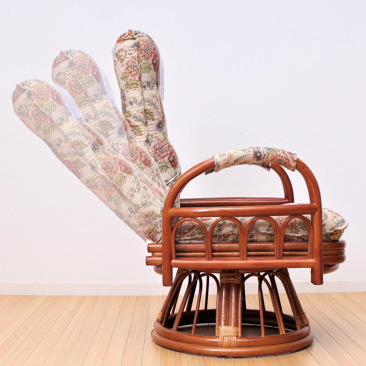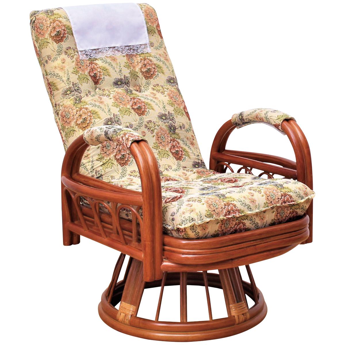 天然籐 リクライニング回転座椅子