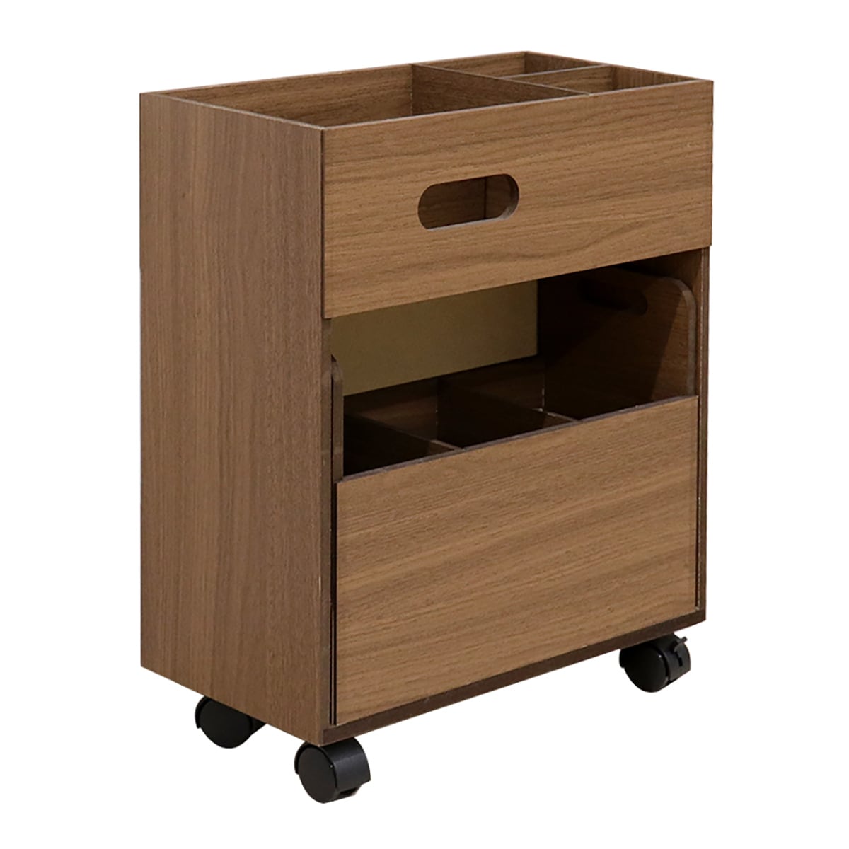 キャスター付きで移動もラクラク。背面には雑誌や新聞を入れられます。