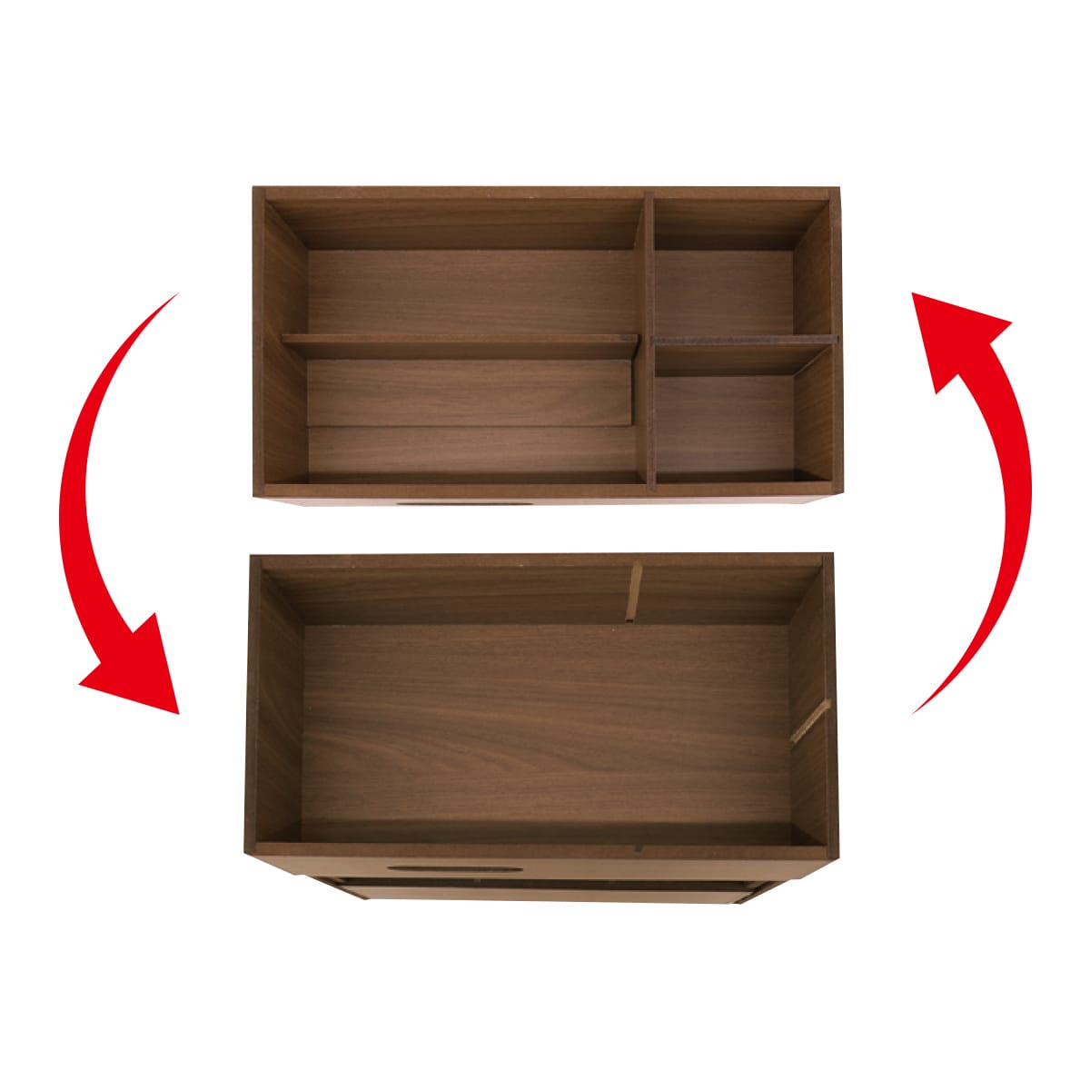 上段の仕切りは取り外せるので、収納物に応じて変更できます。