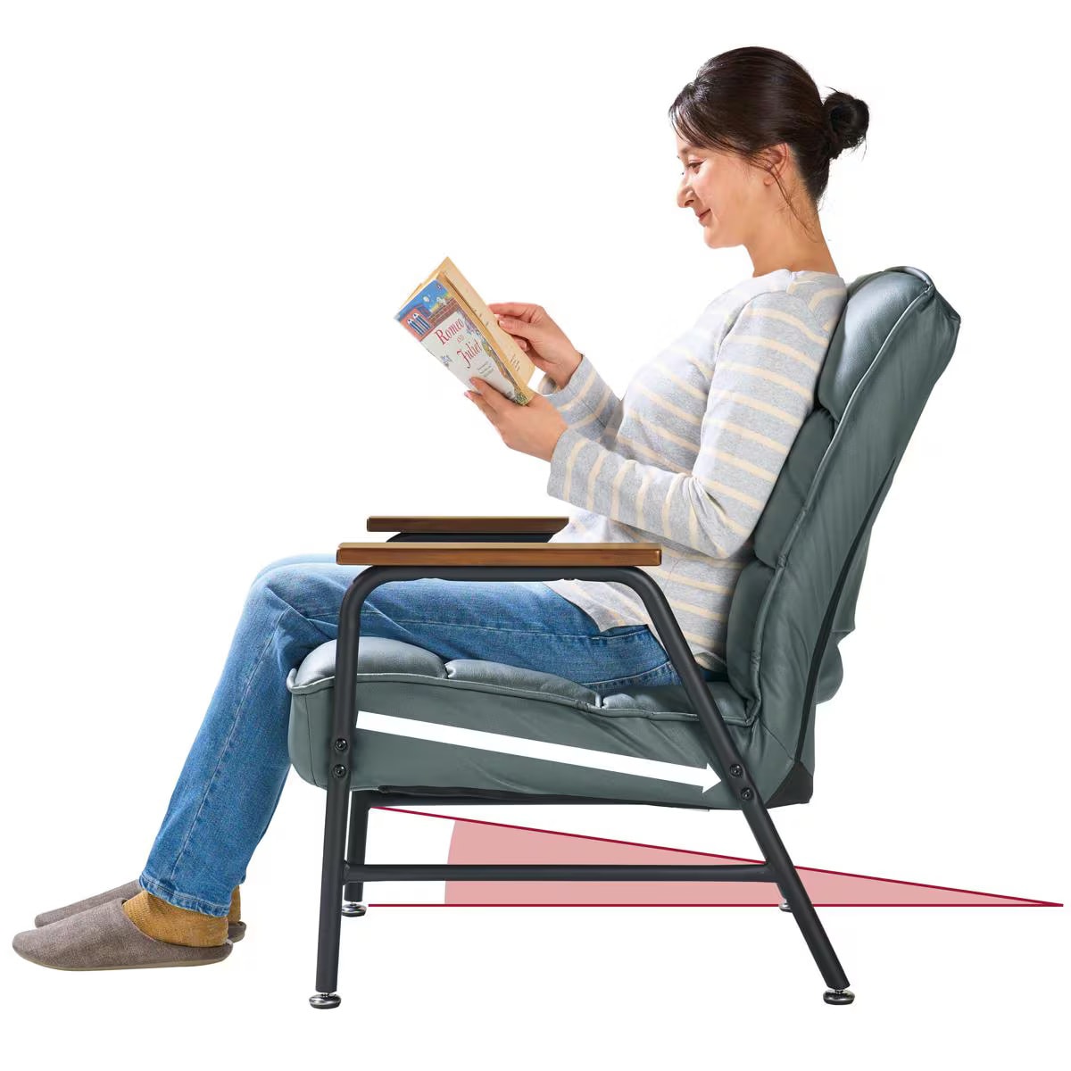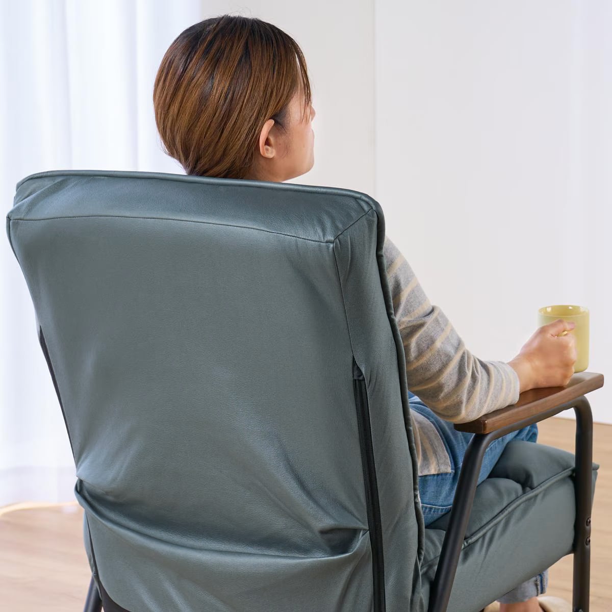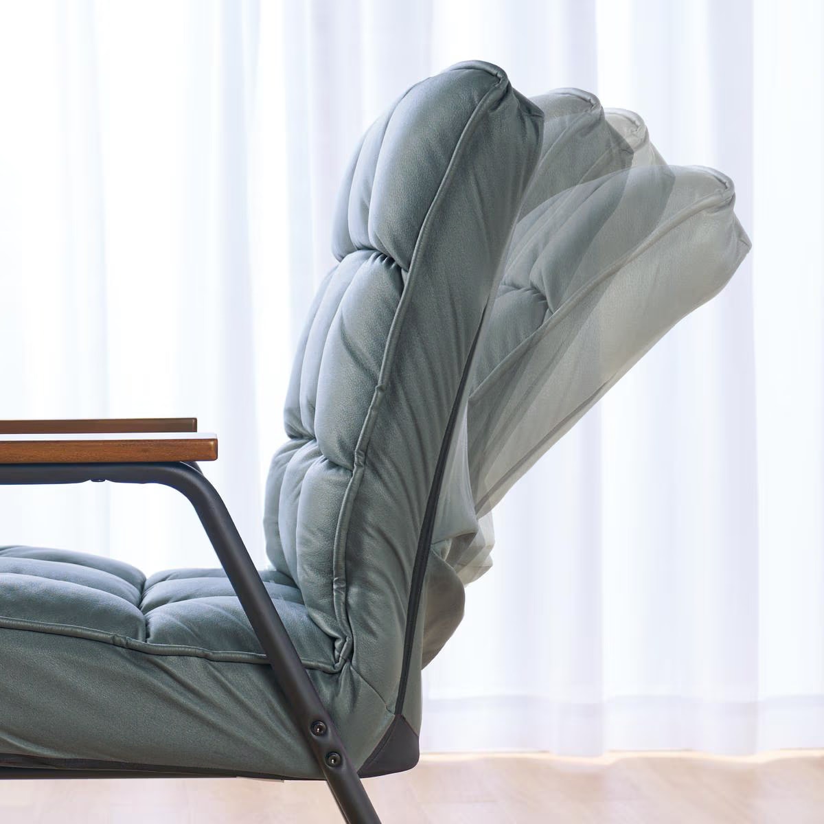 6段階リクライニング背もたれの角度をお好みのくつろぎ姿勢に調節可能。