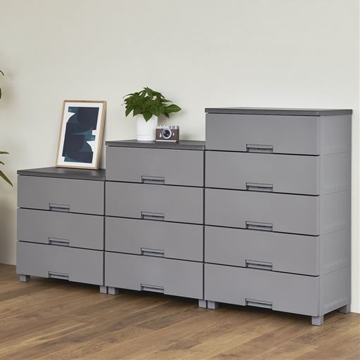 ■[本体]ポリプロピレン [前面パネル]スチロール樹脂 [天板]プリント化粧木質繊維板 ■[耐荷重(約kg)]引き出し1段あたり/5 天板/10●日本製【完成品】(脚のみ取り付け)【大型別配送】 ※沖縄県や一部島しょ部など配送上の都合によりお届けできない地域がございます。