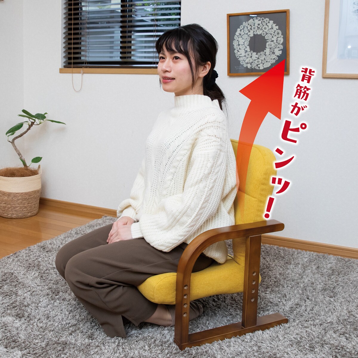 正座やあぐら時に膝がつらい...という方に!膝へ体重がかからず、広い座面で自然と背筋が伸びて快適。●骨盤ポケット骨盤が深い位置で座ることが出来るので、背筋が伸びた自然なS字ラインに♪●リクライニング6段階●座面高は3段階で調節可能座卓に合わせて低めに座りたい方も立ち座りの膝への負担を軽減するために高めに座りたい方も、自分にぴったりの椅子になってくれます♪