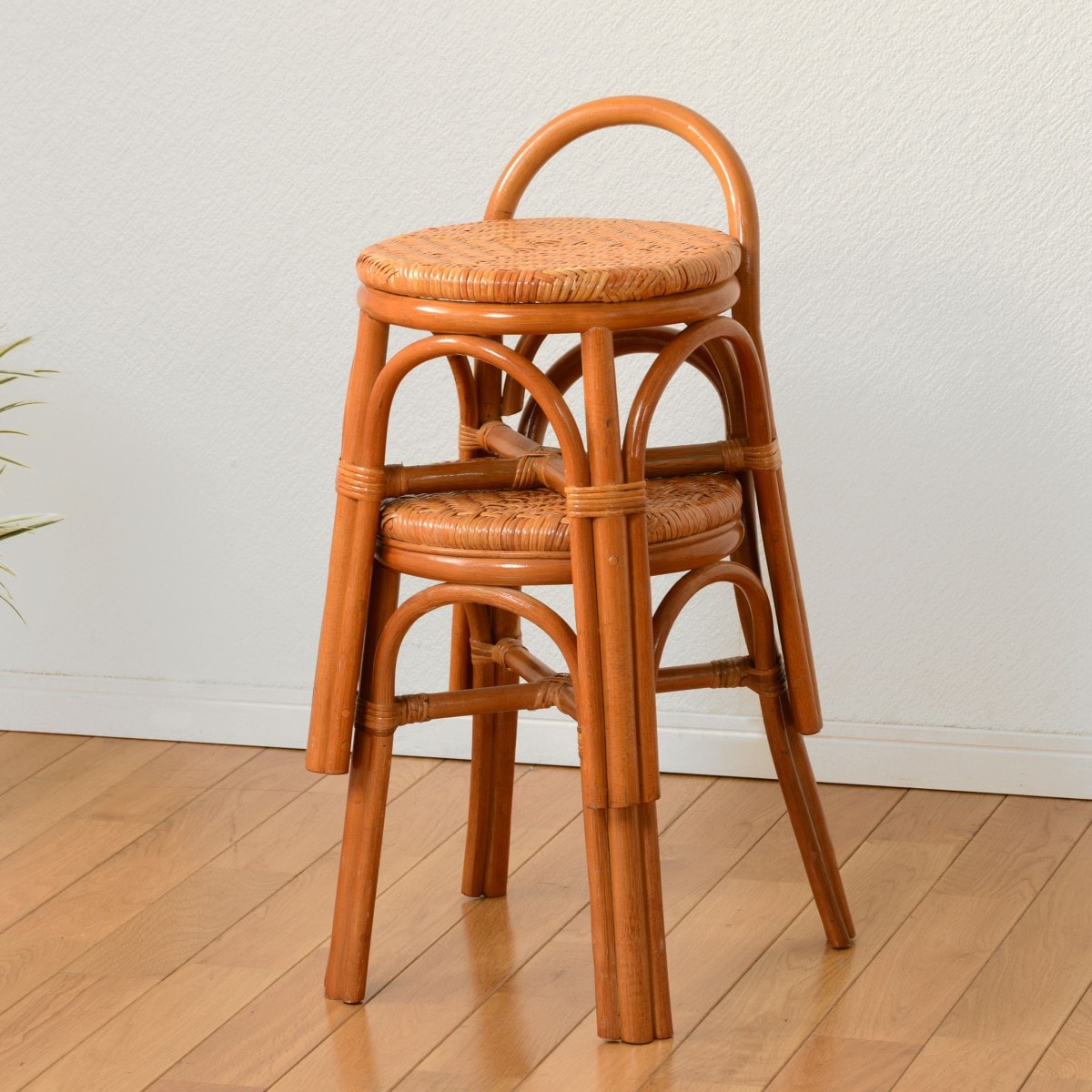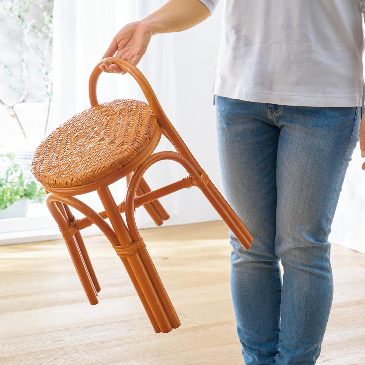 片手でもラクラク持ち運べる、軽くて丈夫な天然籐のスツールです。キッチンや洗面台、リビングなど使いたいときに簡単に持ち運べて便利。2脚組なので、来客時にも大活躍!重ねて収納できるので、スペースをとりません。