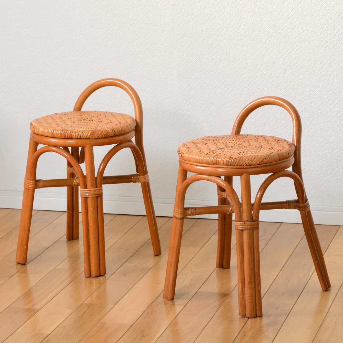 軽く丈夫な天然籐のスツール。2脚組で、来客時にも大活躍。