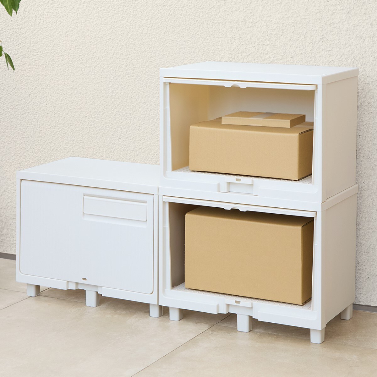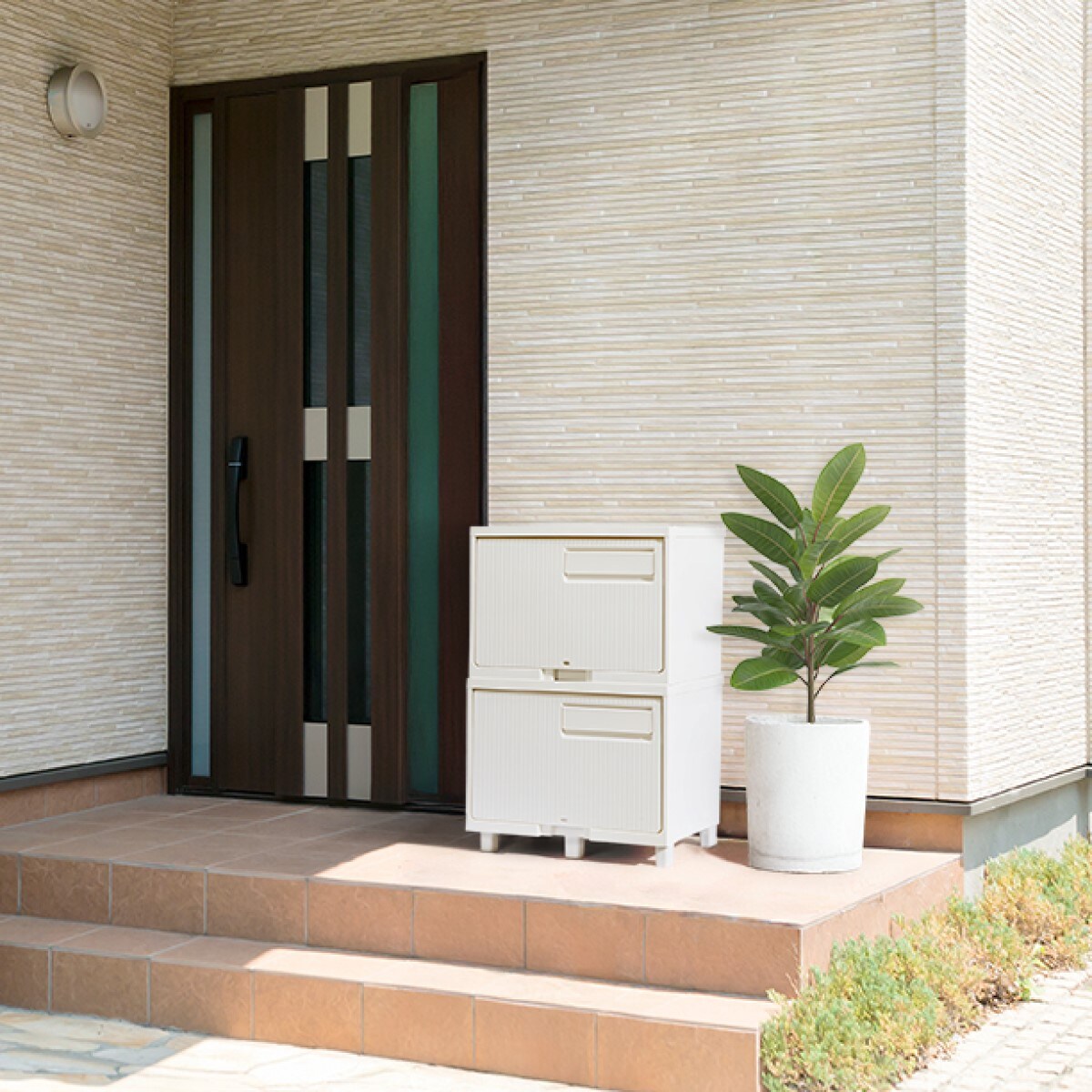 積み重ねられるので玄関まわりがすっきりまとまります。(オフホワイト)
