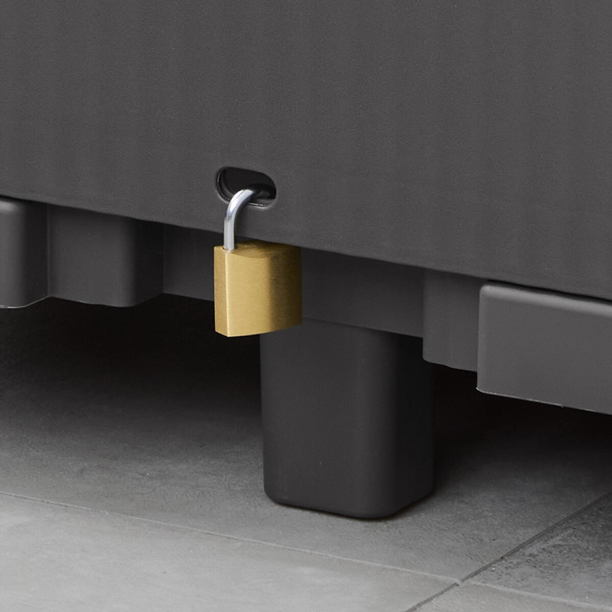 盗難防止に南京錠を取り付けられます※南京錠は付属していません。