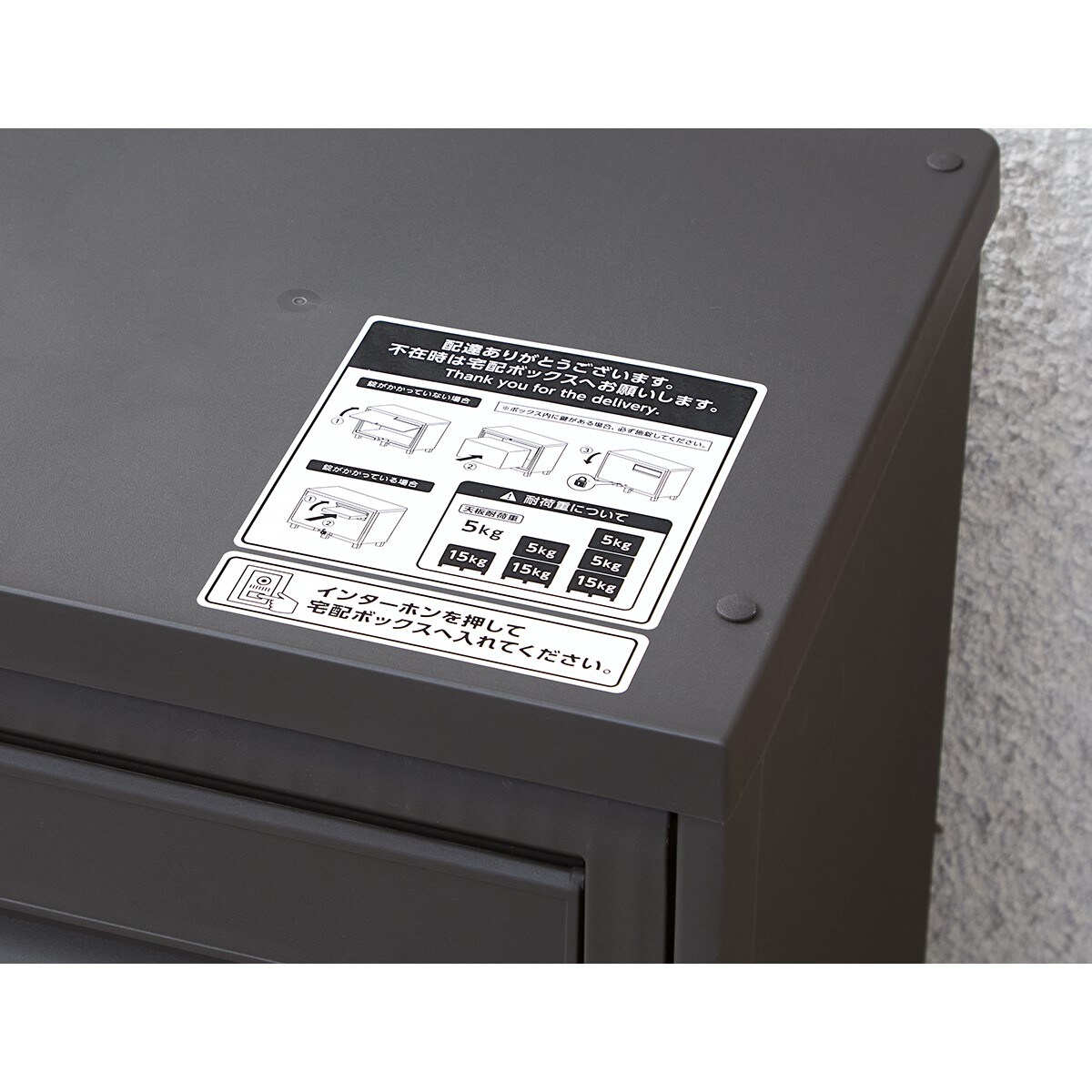 スタイリッシュな見た目と確かな機能性をもつ宅配ボックスです。防水性・防犯対策はもちろん、ポスト口付きで使いやすさも◎。書類や小型の荷物の受取にも便利です。南京錠と背面ワイヤーを通せる穴が開いているため、しっかりと防犯対策ができます。(南京錠・ワイヤーは付属していません)配達員の方が迷わないよう、使用方法が分かりやすく記載された案内シール付き。