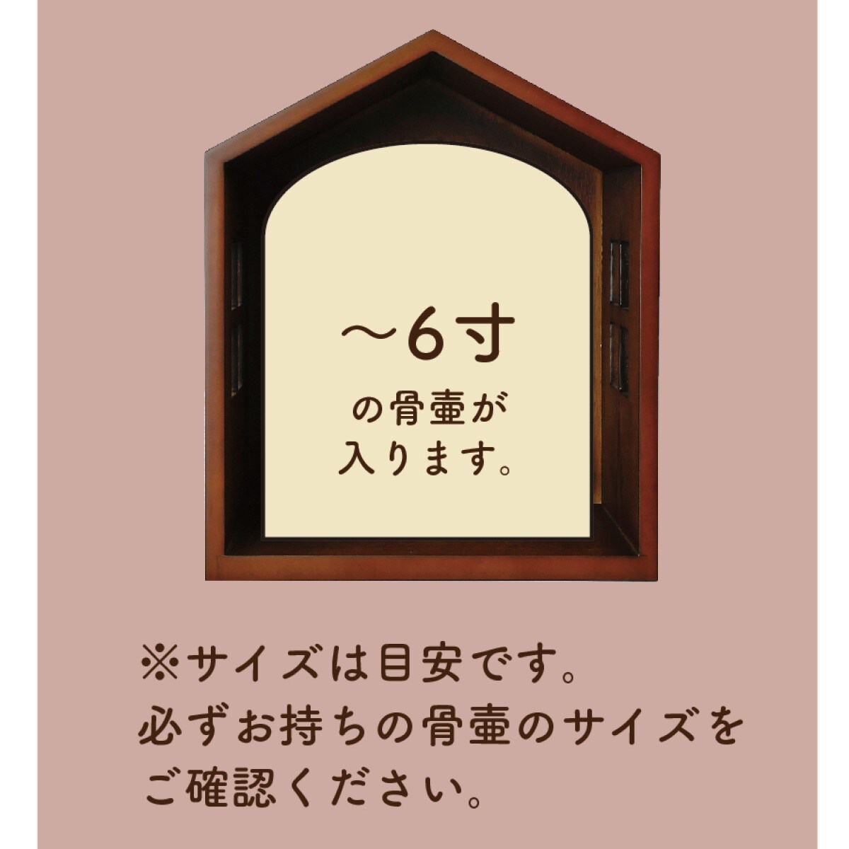 ハウスには6寸までの骨壺が入ります。※サイズは目安です。