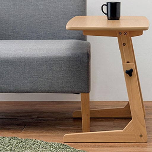 ソファの下に差し込め、近くに引き寄せられるコの字型。ネジをゆるめ、お好みの高さで固定するだけ(4段階の高さ調節が可能)!1人での食事やノートパソコンを使っての作業に最適。サポートバーが作業中のグラつきを軽減し、ストレスフリーな使い心地です。うっかり飲み物をこぼしてもさっと拭きとるだけでお手入れも簡単。