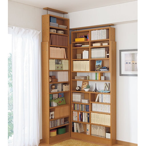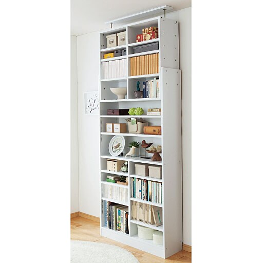 読みたい時にサッと取り出せる片付けやすいスッキリとしたデザイン。本体上部と突っ張り金具で高さを調節する「ダブル方式」なので、天井の高さに合わせてしっかりと設置できます。※天井の対応高さは184~255cmです。