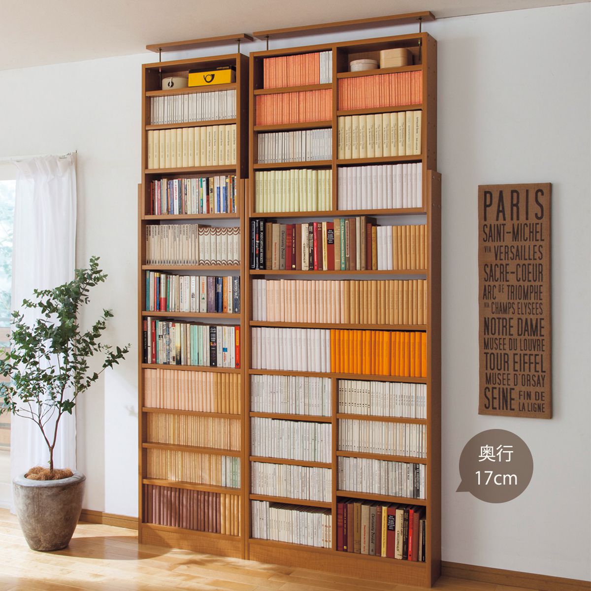 安定感のあるつっぱり式のオープンラック。設置場所に合わせ奥行きが17cm・30cm、収納量に合わせて幅も60cm・90cmの4サイズからお選びいただけます。お手持ちの本のサイズに合わせて棚板を1cm単位で設定できるため、デッドスペースを解消します。
