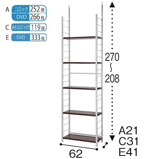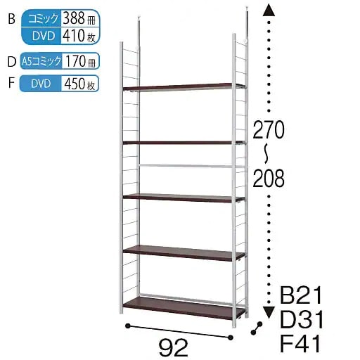 棚板5枚の奥行41cmタイプ。リビング周りの収納に。