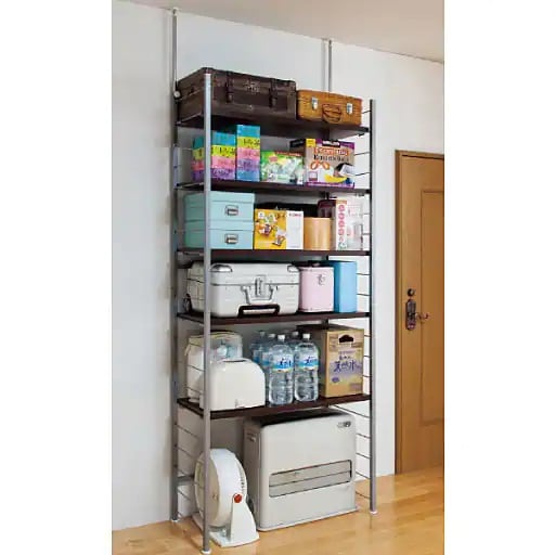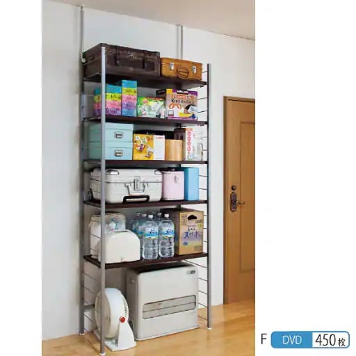 • ブラウン F<br>天井突っ張り式でしっかり固定。棚は可動式(10cmピッチ)で日用品や食品のストック棚としても活躍します。