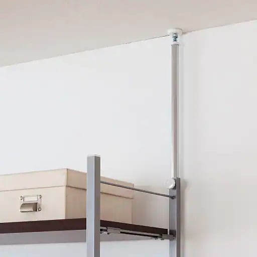 • 天井突っ張り式。奥行の浅いタイプもしっかり固定できます。