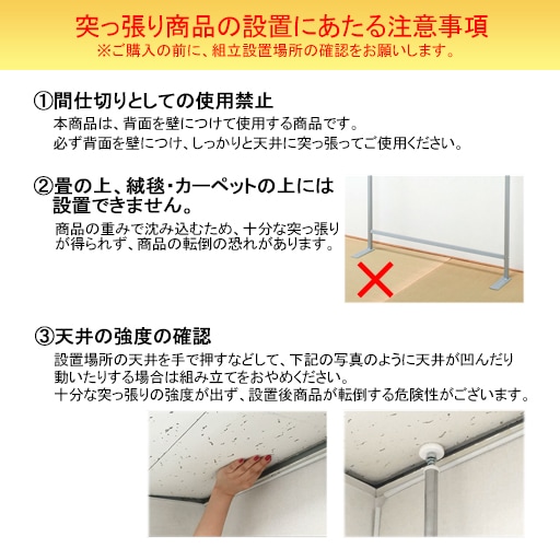 • 突っ張り商品の設置にあたる注意事項。