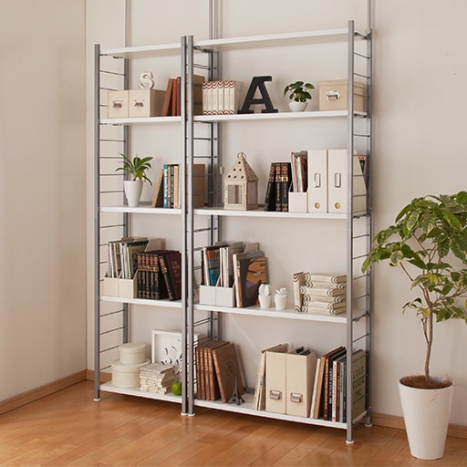 ホワイト E棚板5枚の奥行41cmタイプ。リビング周りの収納に。