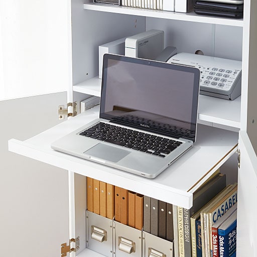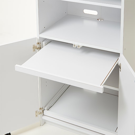 スライド棚板はノートパソコンや、デスクトップタイプのキーボード置き場に便利。