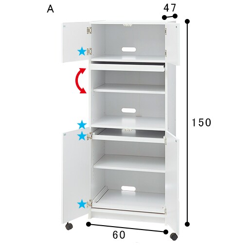ホワイト A ※スライド棚板(2枚)は、4カ所(★)からお好きな高さに設置できます。※寸法の単位はcmです。
