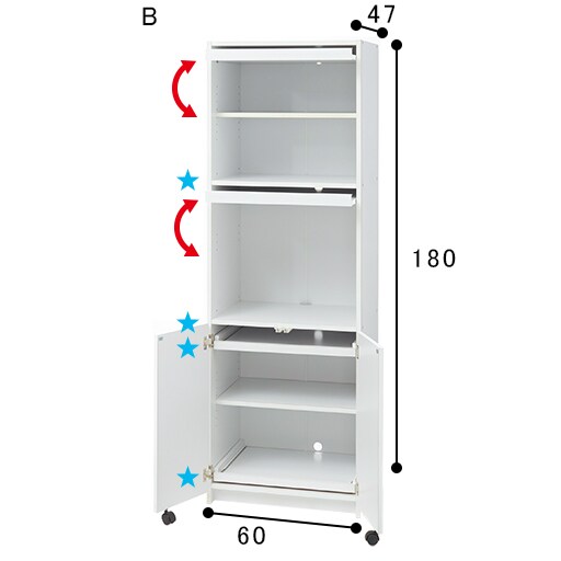 ホワイト B ※スライド棚板(2枚)は、4カ所(★)からお好きな高さに設置できます。※寸法の単位はcmです。
