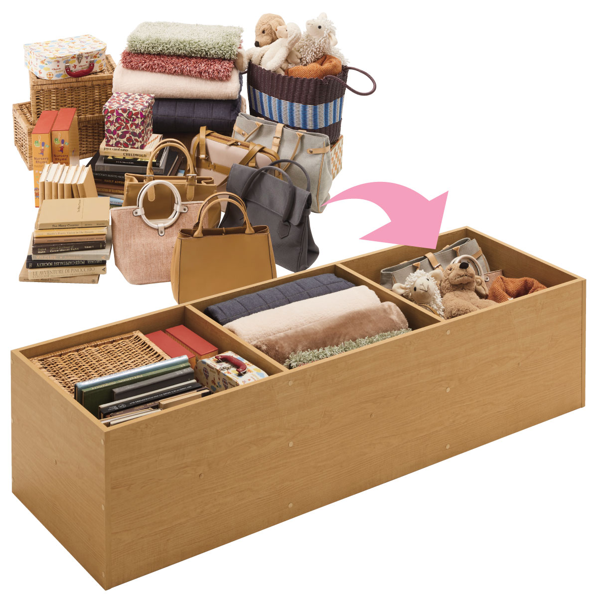 ナチュラル(ハイタイプ) E (幅60cm)×1・F (幅120cm)×3・G (幅120cm/引き出し)×1オフシーズンの小物や衣類もたっぷり収納。