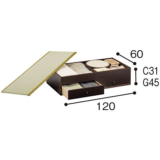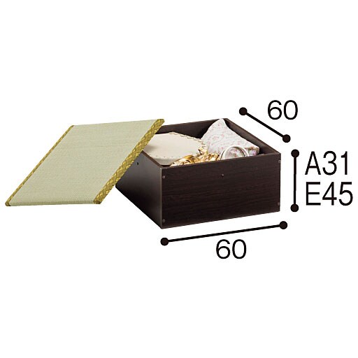 ■サイズ(cm)/[収納部内寸]A・E:幅56×奥行56×高さA:27 E:41 B・F:幅56×奥行57×高さB:27 F:41 C・G:幅56×奥行57×高さC:10 G:24 D・H:幅56×奥行57×高さD:27 H:41 [引き出し内寸]C・G:幅54×奥行42×深さ11(有効12) ■[本体]プリント紙化粧繊維板[畳部]畳表:天然い草 中材:ウレタンフォーム・パーティクルボード ■耐荷重(kg)/[天板]100 [収納部]10 [引き出し]5 ■重量(kg)/A:10 B:18 C:28 D:28 E:11 F:22 G:32 H:31 ●連結用ジョイント金具付き●日本製【大型別配送】(A・Eは小型)【組立式(2人で)15分程度】(A・B・E・F)【組立式(2人で)30分程度】(C・D・G・H)※沖縄県や一部島しょ部など配送上の都合によりお届けできない地域がございます。