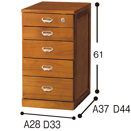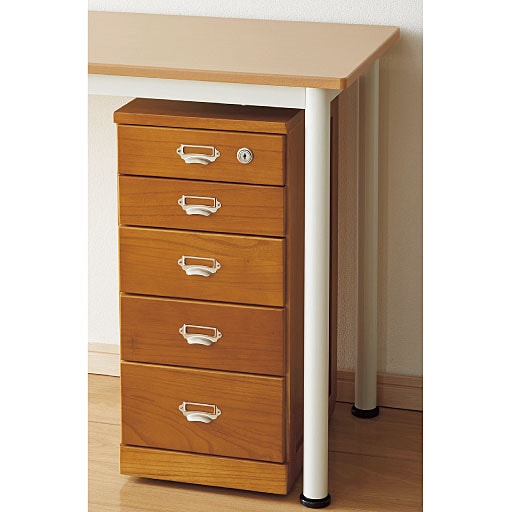 ブラウン A5段タイプはデスク下でも使えます。取っ手にはネームホルダー付き。